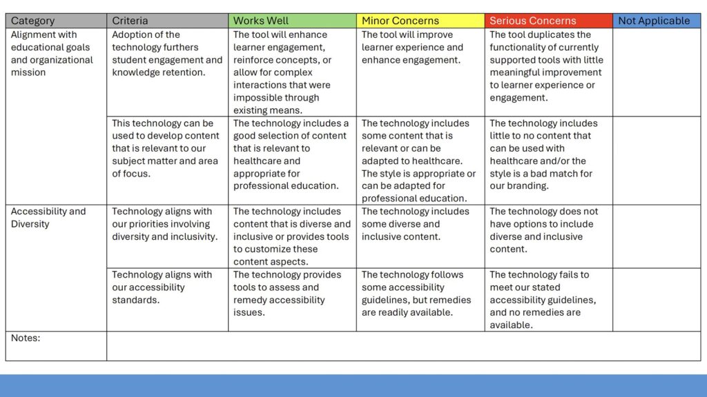 Learning designers must evaluate new tools to provide the most up-to-date learning experiences for students. A rubric can help analyze and score new tools in a consistent, objective way.